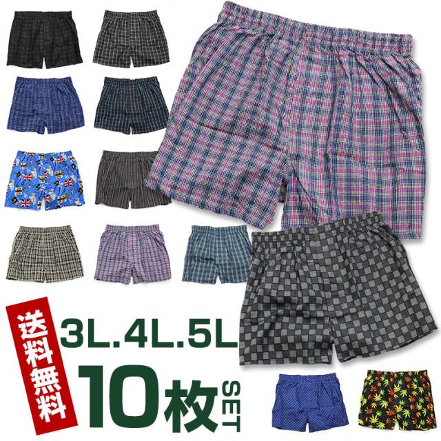 (パンツ10枚セット)3L/4L/5L 2枚組×5パック 柄メンズトランクス 前開きパンツ 安心の綿100% 下着/肌着/インナー