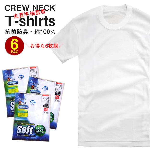 6枚組(2枚組×3パック)丸首半袖肌着 M/L/LL 綿100% 紳士/インナーシャツ