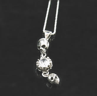 ドクロファン必見!!2つのドクロにジルコニアが挟まれたユニークなデザイン。今はやりの揺れるネックレスがドクロで登場です!動くたびに揺れるドクロは存在感たっぷり。丸っとしたドクロからは愛嬌も感じます。