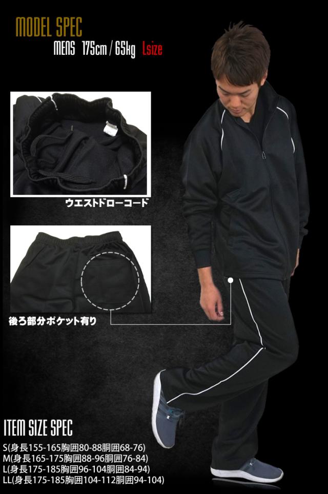 [素材]本体:ポリエステル100%リブ部分:ポリエステル97 ポリウレタン3%[サイズ]※実寸サイズは別途画像を参照ください【画像モデルDATA】男性:160cm 53kg Mサイズ/ブラック×ホワイトライン着用女性:157cm Sサイズ/グレー×ホワイトライン着用S(身長155-165胸囲80-88胴囲68-76)M(身長165-175胸囲88-96胴囲76-84)L(身長175-185胸囲96-104胴囲84-94)LL(身長175-185胸囲104-112胴囲94-104)3L(身長175-185胸囲112-120胴囲104-114)4L(身長175-185胸囲120-128胴囲114-124)※メンズサイズ表記となります。 女性の方は通常着られているサイズより1サイズ小さめをお勧めしておりますが、 画像実寸サイズを参考にご検討ください。[カラー]ブラック×ホワイトライングレー×ホワイトラインチャコール×レッドラインブラック×チャコールライン[生産国]中国 china[特徴]▼トップス・前ポケット付き・裾リブ▼パンツ・両サイドポケット付き・絞り紐付き