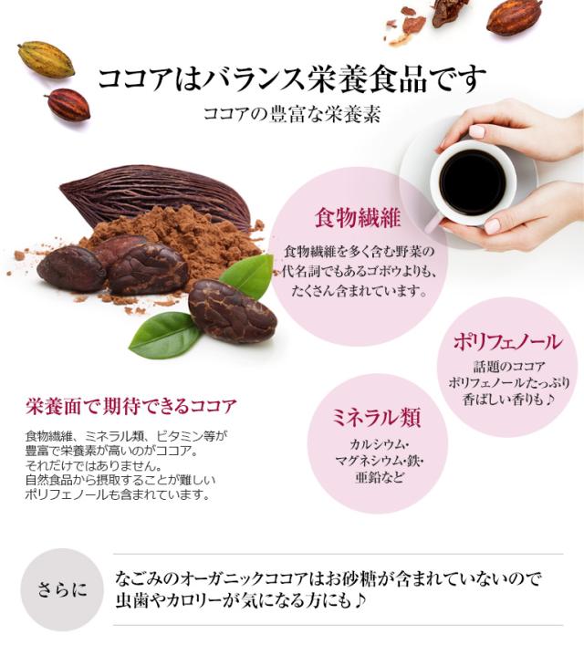 有機栽培されたカカオ豆で作られた低脂肪の、美味しい本格的なココアです。