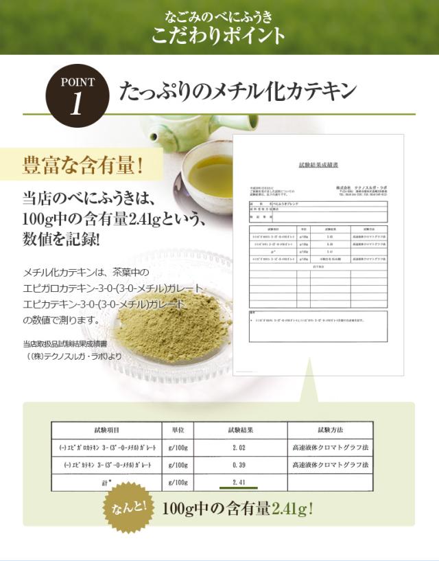 肝心のメチル化カテキンの含有量は100g中2.41gとたっぷり。