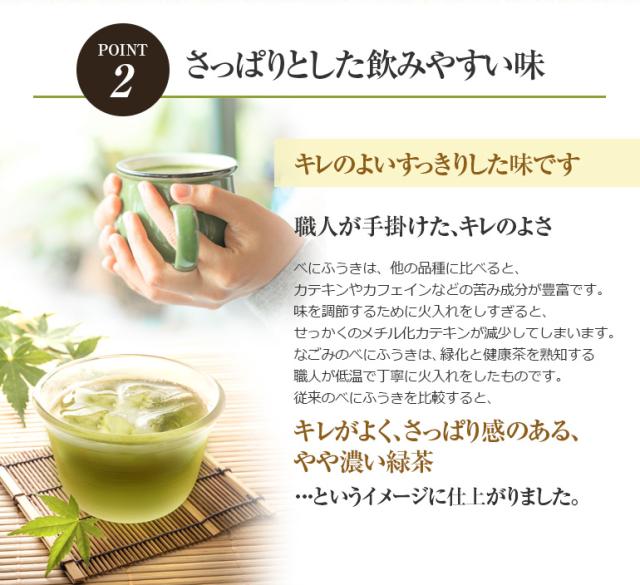 - 今まではルイボスティーの一辺倒だったのですが、今回初めてべにふうき茶を買いました。意外と苦くなくて飲みやすいです。個包装も良いですよね。