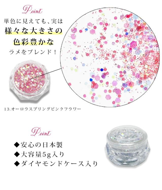 日本製 レーヌ森ブレンドグリッター (ラメ グリッター) 大容量5g! 7〜28種類のラメをブレンドした新しいタイプのラメ グリッター!