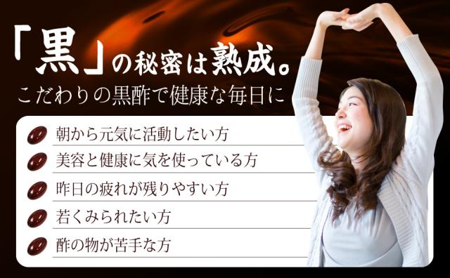 主要原料(1カプセルあたり):黒酢粉末 14mg / 黒酢もろみ粉末 10mg