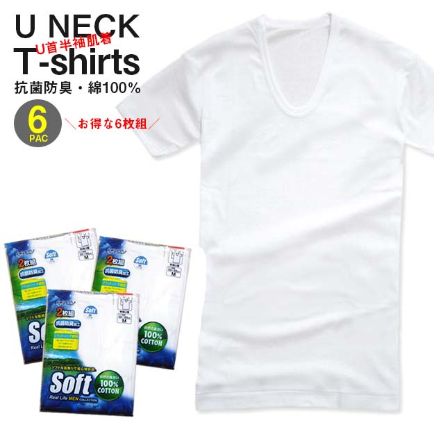 6枚組(2枚組×3パック)U首半袖肌着 M/L/LL 綿100% 紳士/インナーシャツ