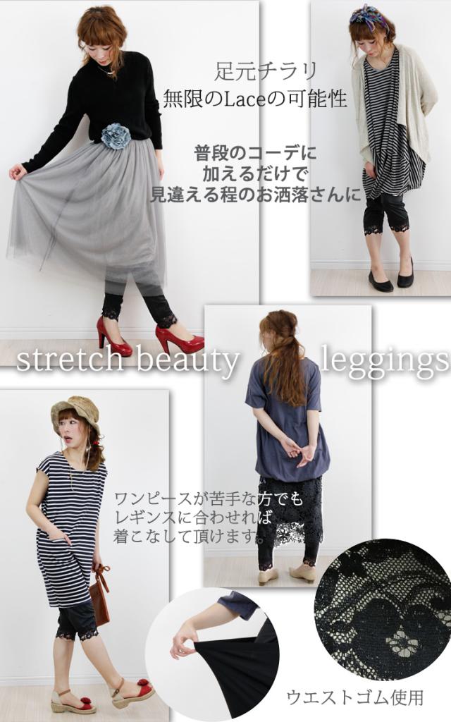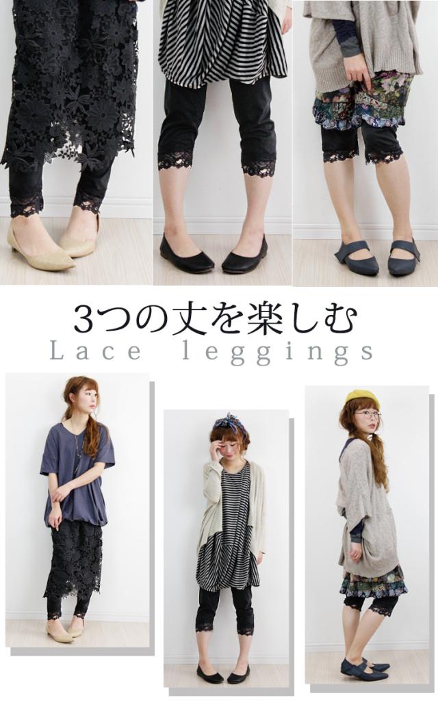 お洒落へ導く、5分丈・7分丈・10分丈レースレギンス。