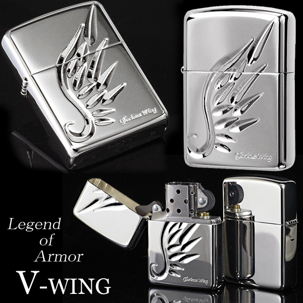 クリスマス ZIPPO/レジェンド オブ アーマージッポー V-WING Vウイング シルバーポリッシュ仕上げ ZIPPO ジッポーライター V刃彫刻 ズッシリ 重厚感 大天使の羽 メンズ プレゼントARMOR 送料無料 メール便対応