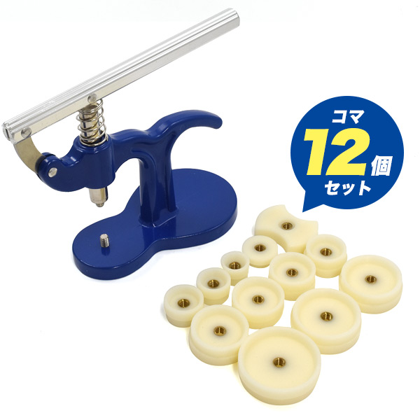 腕時計のメンテナンス後に、裏蓋を閉じるための裏蓋閉め器。レディースの小さな腕時計や、様々なサイズの腕時計に使えるよう各種サイズのコマ12個もセットになっておりオススメです。