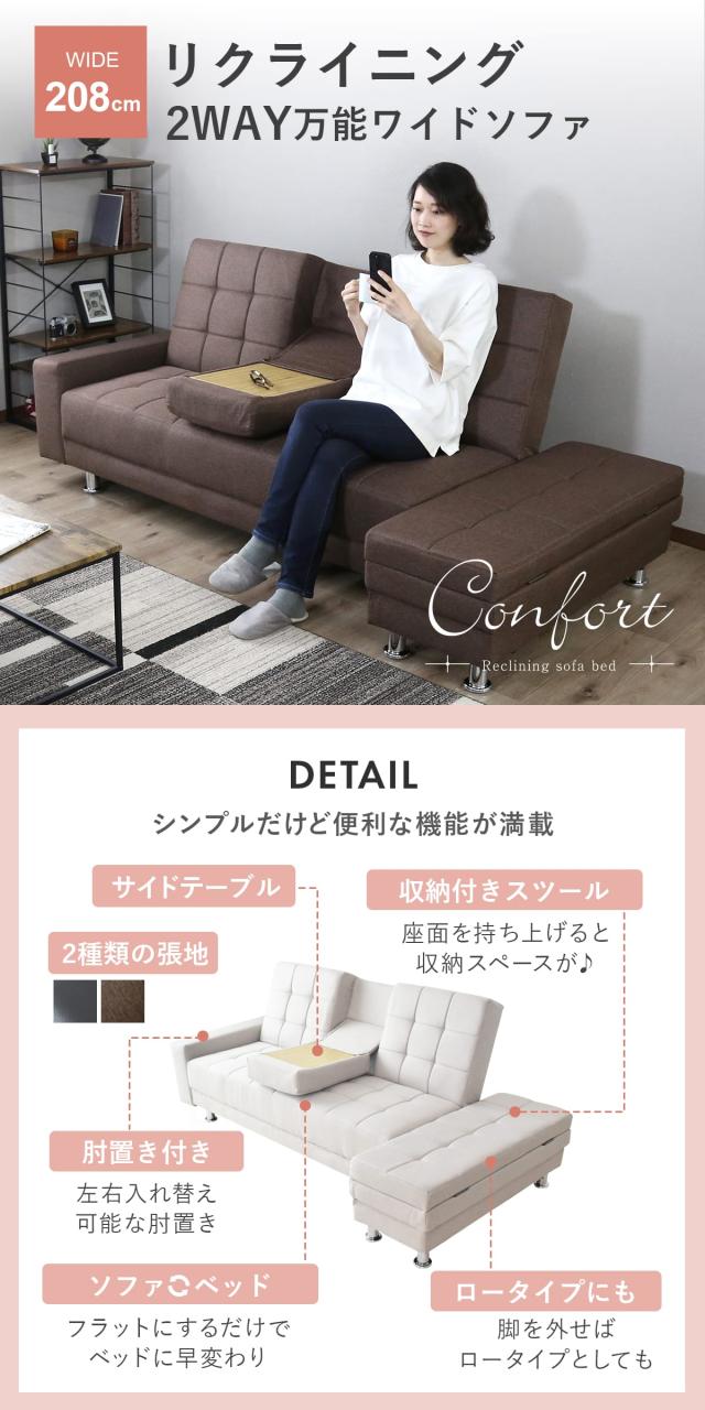 ソファー ソファーベッド 2人掛け 3人掛け リクライニング スツール 収納 レザー sofa コンフォルト インテリア家具 2P 3P おすすめ おしゃれ 北欧 big_ki プレゼント tm