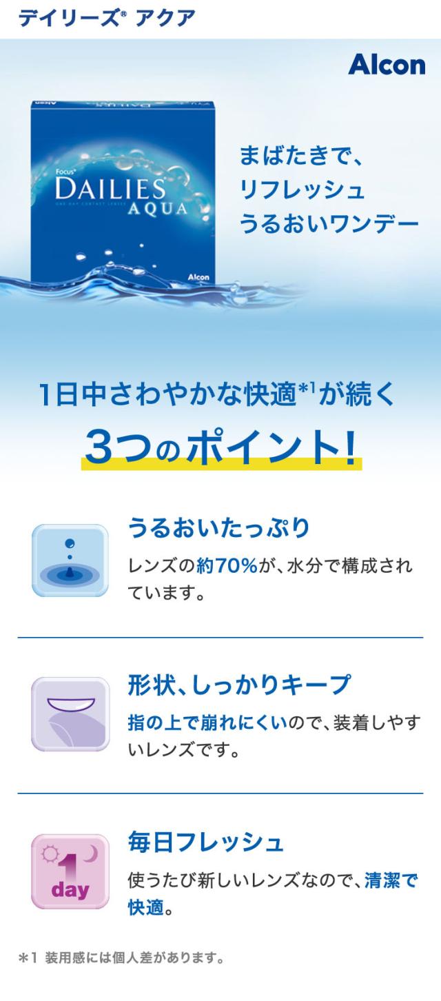 【送料無料】 デイリーズアクア 近視 1箱 90枚入り ワンデー 日本アルコン [ アルコン alcon コンタクト コンタクトレンズ 近視用 90枚 1日使い捨て 1day デイリーズ アクア DAILIES Aqua ]