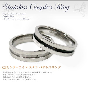 【ネーム刻印無料】選べる2カラー CZセンターライン ステンレスリング ペアリング
