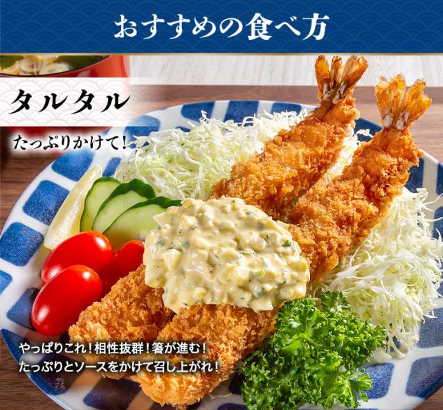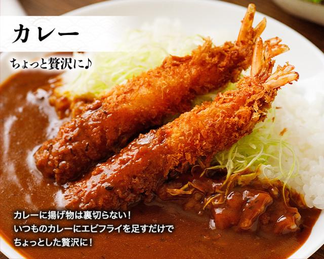 業務用で衣もついていて冷凍庫より取り出しそのまま揚げるだけ!!タルタルソースをつけたり、エビフライ丼や、エビフライカレーも絶品!