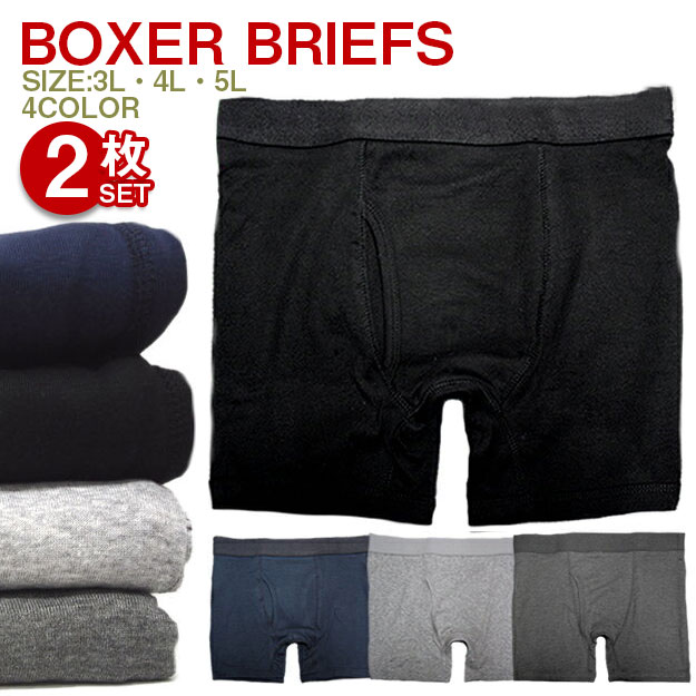 2枚組 3L/4L/5L 立体設計 無地ボクサーブリーフ 4色3サイズから 下着/肌着/インナー/ボクサーパンツ