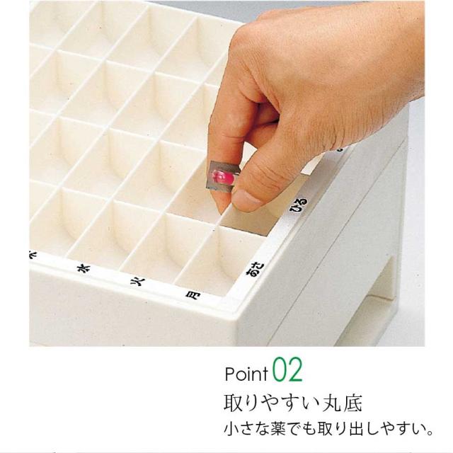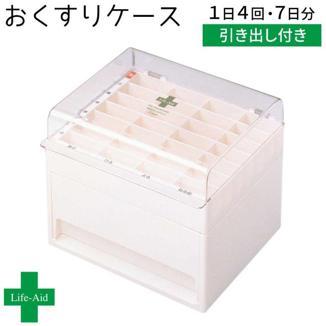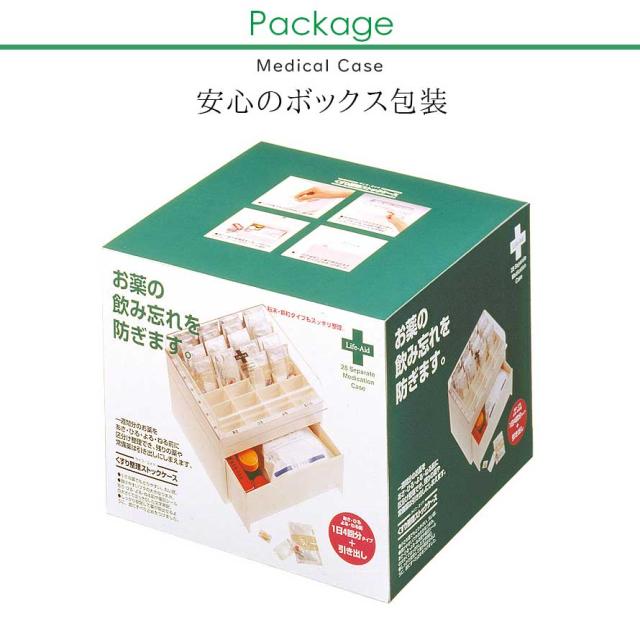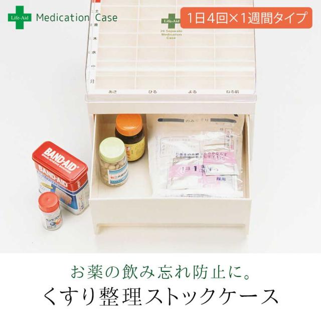 毎日のお薬服用にお役立ちの薬箱。使う人の視点で作られたライフエイドシリーズです。「くすり整理ストックケース」は1週間分のお薬を準備しておくことが出来ます。しっかり開け閉めしやすい大きなつまみのフタ。小さな薬でも飲み忘れがないよう、透明素材を採用し、一目で中身が分かります。「あさ・ひる・よる」や曜日のシールをケースに貼ることでで、ちゃんと飲んでいるかの確認もできます。無地のシールも付属していますので、「食間」など使う人に合わせて作ることもできます。■商品番号:047170557