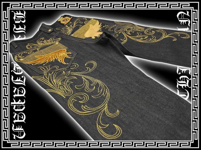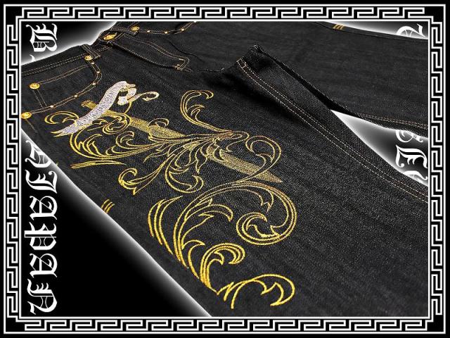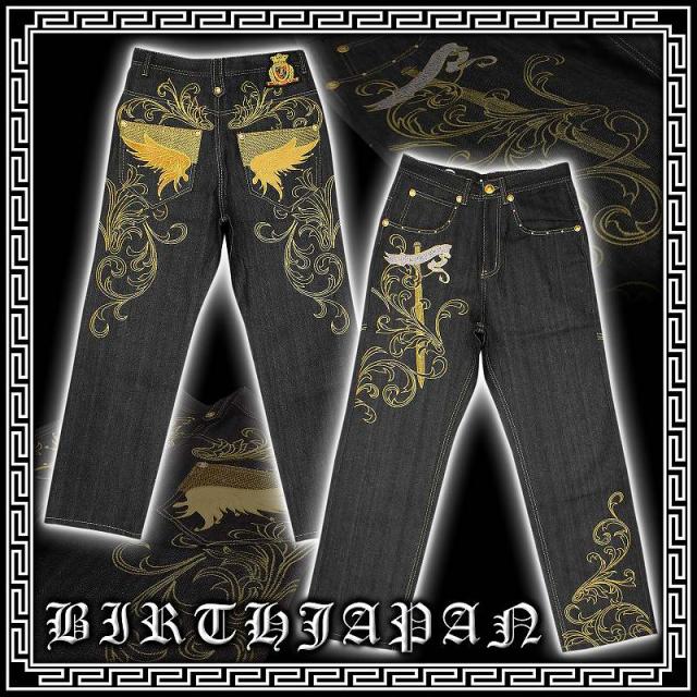 020金 B系HIPHOP系ブランド刺繍ジーンズ バロック柄 オラオラ系悪羅悪羅系服パンツちょい悪ヤンキーチンピラやくざ 悪党の店 バースジャパン BIRTHJAPAN