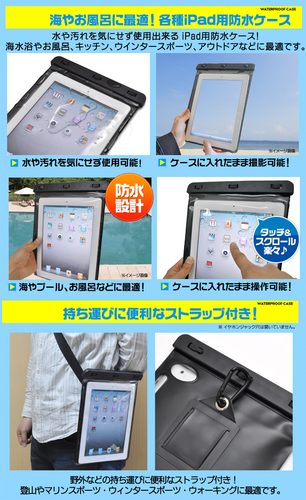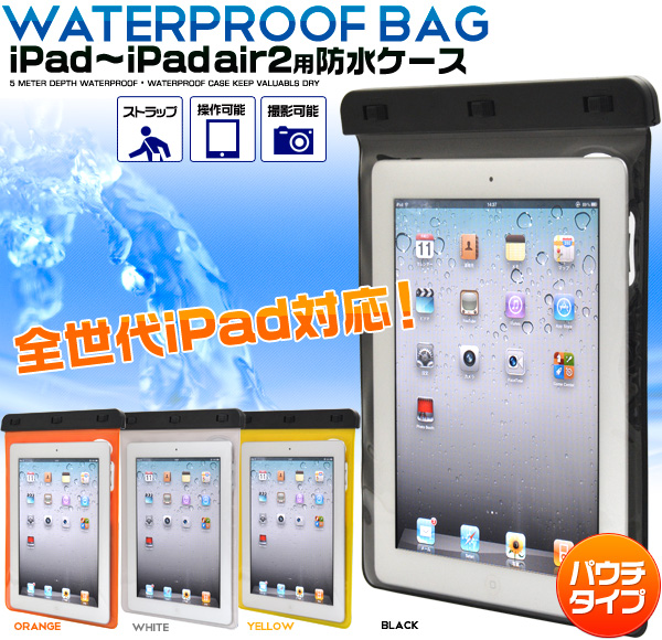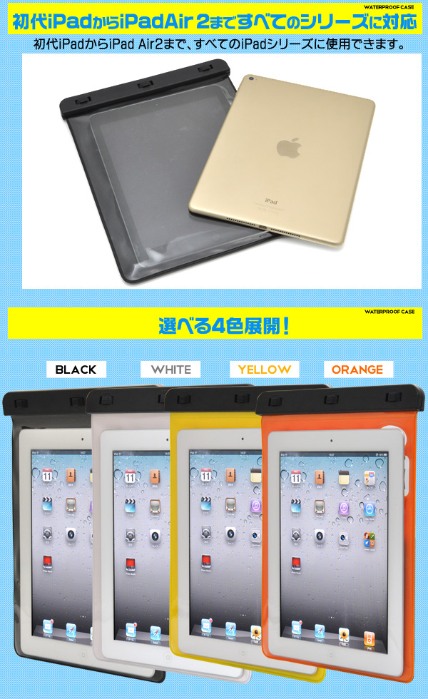 海水浴やお風呂に便利な、各種iPad用防水カラーケース!