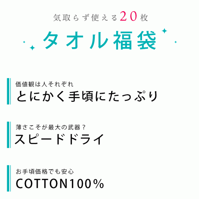 [ keyword | タオル たおる towel お買い得 セット 福袋 薄手 速乾 掃除 雑巾 トイレ タオル 洗顔 色柄おまかせ 柄込み 綿100% COTTON100 業務用 使い捨て お風呂 アウトドア 軽量 コンパクト 旅行 ポイント ポイント消化 ポイント消費 こだわり安眠館のタオル福袋 ]