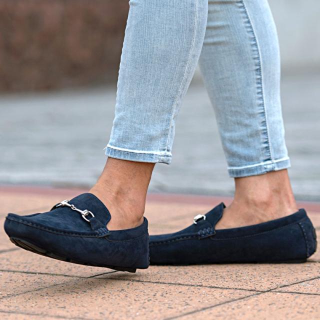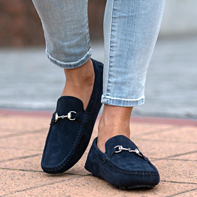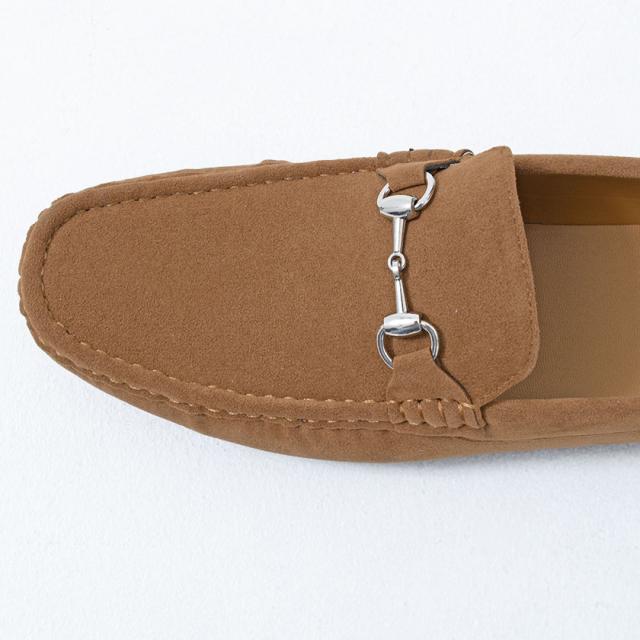 定番のビット付きデザインで、ボディにはフェイクスウェード生地を使用した柔らかい履き心地が魅力。