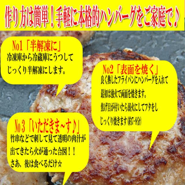 牛肉本来の旨みを閉じ込めた、ハンバーグ工場から直送のハンバーグです余計なものは一切入れず、”無添加”にこだわりました素材のひとつひとつを大事にし、純度の高いものを求めた結果、醤油は「特級醤油」に、コショウは「純正胡椒」になりました塩・コショウ・醤油のみの調味料で作り上げるハンバーグは当社自慢のハンバーグです牛肉100%使用し無添加商品です。雑誌に取り上げられるほどの人気商品です同じ配送方法の商品←クリックさらにコチラハ一緒に買うと送料無料【作り方】1.まずは半解凍(冷凍庫から冷蔵庫に移す)2.表面を焼いて弱火でじっくりよく熱したフライパンに油を入れずに、初めは強火で両面を焼きます焦げ目がついたら弱火にして蓋をします後はじっくり我慢の子(7−8分)3.竹串などでぶすっと刺して、透明の肉汁が出てきたら火が通った合図商品名:牛生ハンバーグ 190g×10個生(原)産地:牛肉(オーストラリア)加工地:大阪原材料、食品添加物: 牛肉、玉ネギ、全卵、パン粉、牛乳、醤油、コショウ、食塩(原料の一部に小麦・大豆を含む)賞味期限 製造日より3ケ月(冷凍)解凍後 2日/要冷蔵10℃以下 商品名:牛生ハンバーグ...