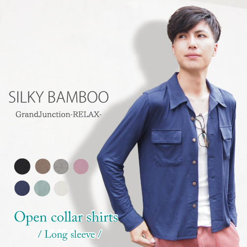 [GrandJunction]シルキーバンブープレーン長袖シャツ/リラックス/竹レーヨン素材 /PFY431