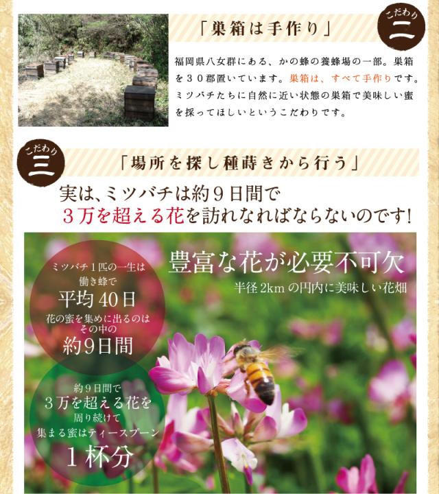 [保存方法]直射日光を避け、涼しい所で常温保存。自然のままのハチミツですので結晶する場合がありますが、品質になんら影響ありません。