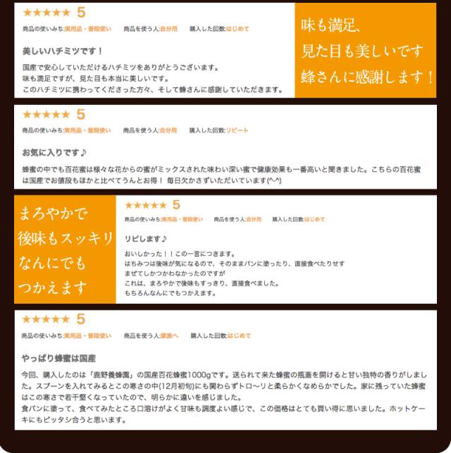 九州の美味しい天然の完熟蜂蜜(ハチミツ)無添加の100%ナチュラルハニー 国産百花蜂蜜(はちみつ) 。九州を中心に山に咲く様々な花から採れたこれぞ本物の完熟無添加のハチミツ!香り、うま味ともに舌触りまろやかで後味もスッキリとしています♪