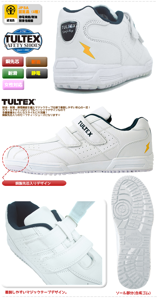 安全靴 スニーカー タルテックス 静電 耐油 耐滑 TULTEX マジックテープ ローカット セーフティーシューズ 作業靴 おしゃれ 安全スニーカー メンズ レディース 男女兼用 JSAA-A種合格品 アイトス AITOZ AZ-51626