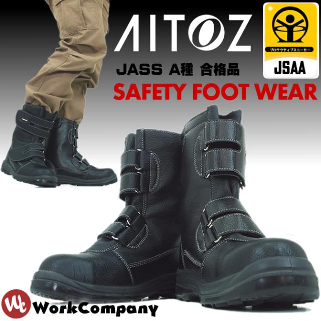 安全靴 スニーカー アイトス セーフティーブーツ マジックテープ 耐油 静電 作業靴 おしゃれ ハイカット 安全ブーツ ブラック メンズ JSAA-A種合格品 AITOZ AZ-59805