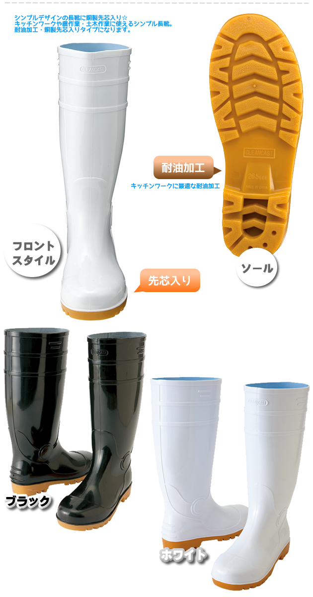 | シンプルデザインの長靴に鋼製先芯入り☆厨房のキッチンワークや農作業・土木作業に使えるシンプル長靴。耐油加工・鋼製先芯入りタイプになります。 | ||||||