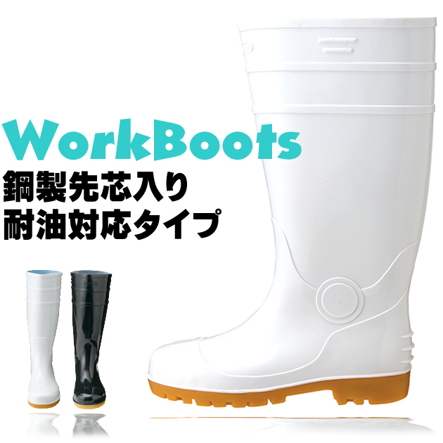 シンプルデザインの長靴に鋼製先芯入り☆厨房のキッチンワークや農作業・土木作業に使えるシンプル長靴。耐油加工・鋼製先芯入りタイプになります。