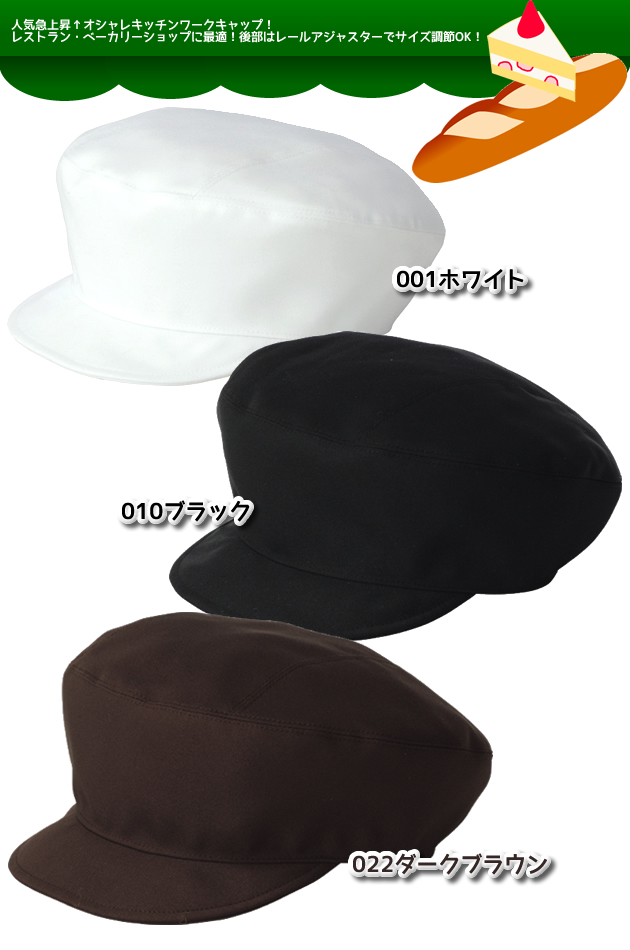 | 人気急上昇↑オシャレキッチンワークキャップ!レストラン・ベーカリーショップに最適!後部はレールアジャスターでサイズ調節OK! | ||||||