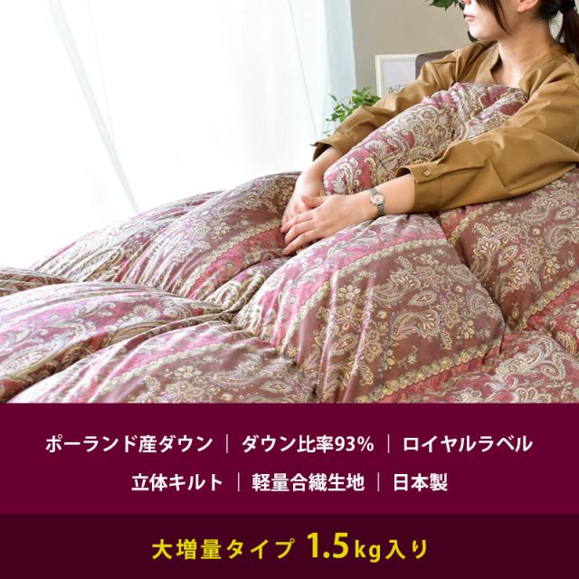 羽毛布団 シングル ロング 日本製 ポーランド産 ホワイトダックダウン93% 1.5kg ロイヤルゴールドラベル 掛け布団 威風堂々 7年保証