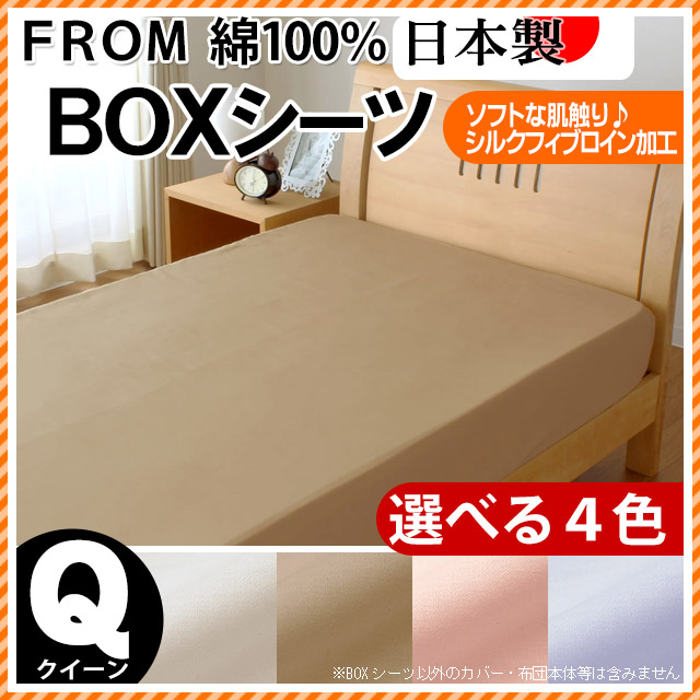 ボックスシーツ 「FROM」 フロム クイーン 160×205×28cm 無地 日本製 綿100% (BOXシーツ/マットレスカバー/シンプル/シルクタッチ)
