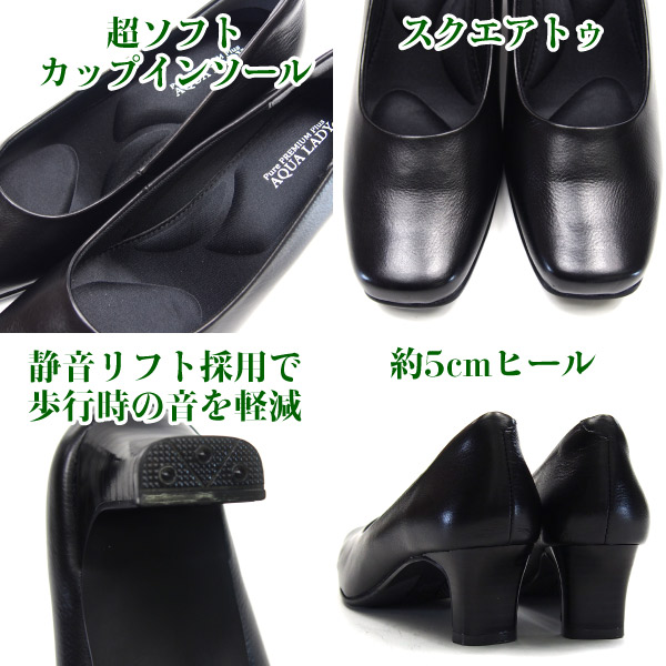 【サイズ交換無料】AQUA LADY アクアレディ パンプス レディース A9060 3E 幅広 本革 女性 婦人 フォーマル 黒 冠婚葬祭