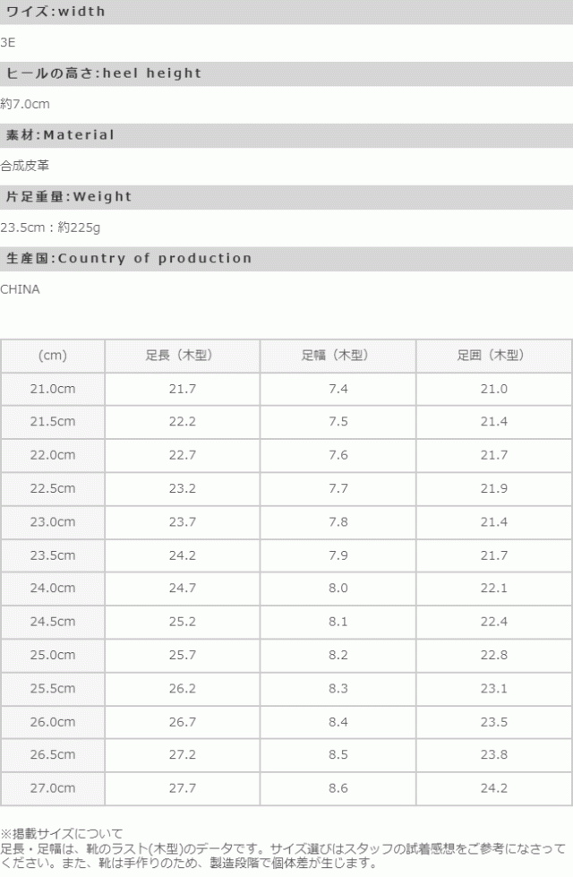 足長(木型):22.7cm/足幅(木型):7.6cm