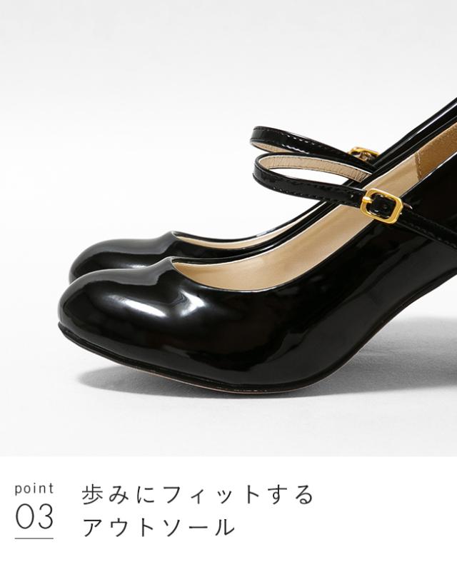パンプス レディース 痛くない 歩きやすい ラウンドトゥ ストラップ 走れるパンプス 大きいサイズ 結婚式 卒業式 入学式 パーティ 黒