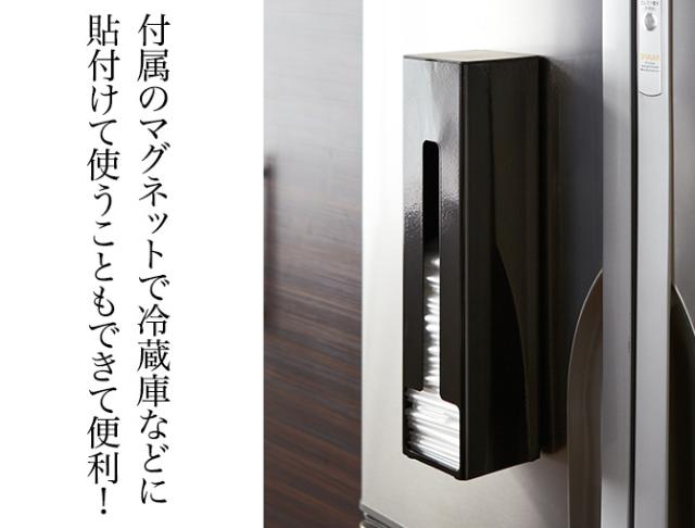 ポリ袋を畳まず、丸めて収納しても取り出せ、付属のマグネットで、冷蔵庫の扉や側面にも貼り付けることができます。