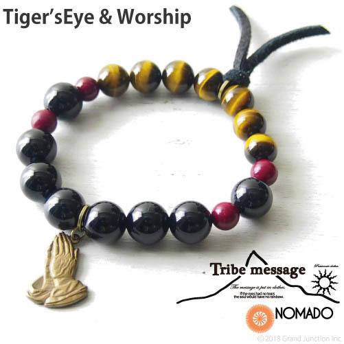 [Nomado/ノマド]アウトドアチャームブレスレット/タイガーアイ&ワーシップ/JUZ-0021/トライブメッセージ/ NMD121
