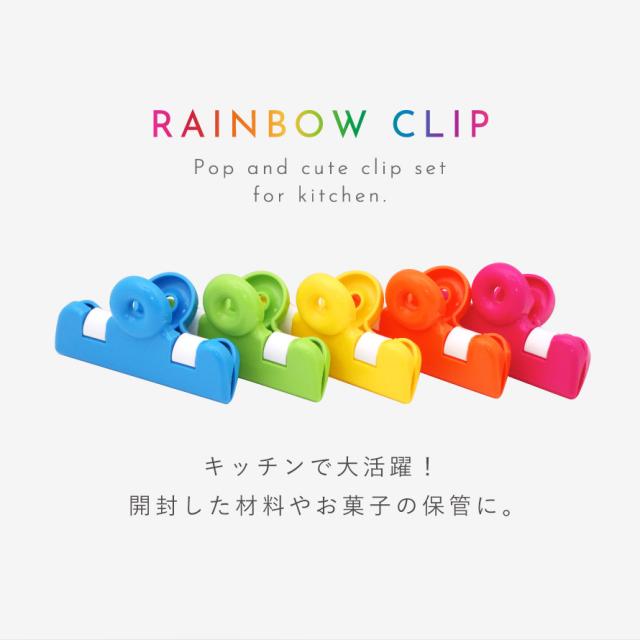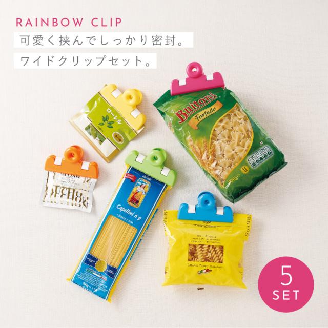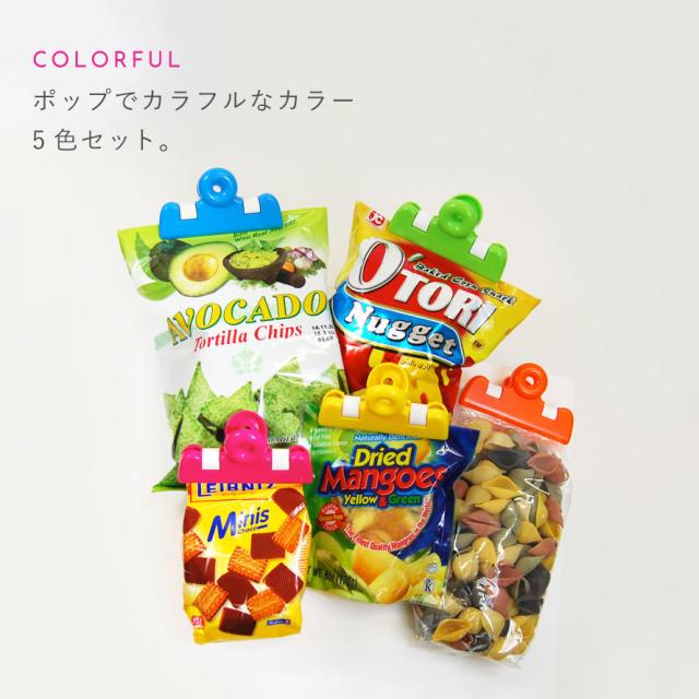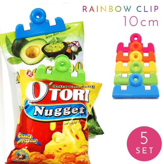 袋止めクリップ 大 5個 セット 食品 クリップ 袋 お菓子 袋止め 調味料 食品保存 保管 キッチン 便利グッズ カラフル かわいい レインボークリップワイド 5個組