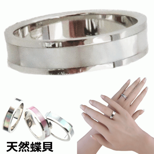 ペアリング 指輪 刻印無料 蝶貝(シェル)ストライプ ステンレスリング 【3.0mm幅】1個売り(指輪/ペアリング)