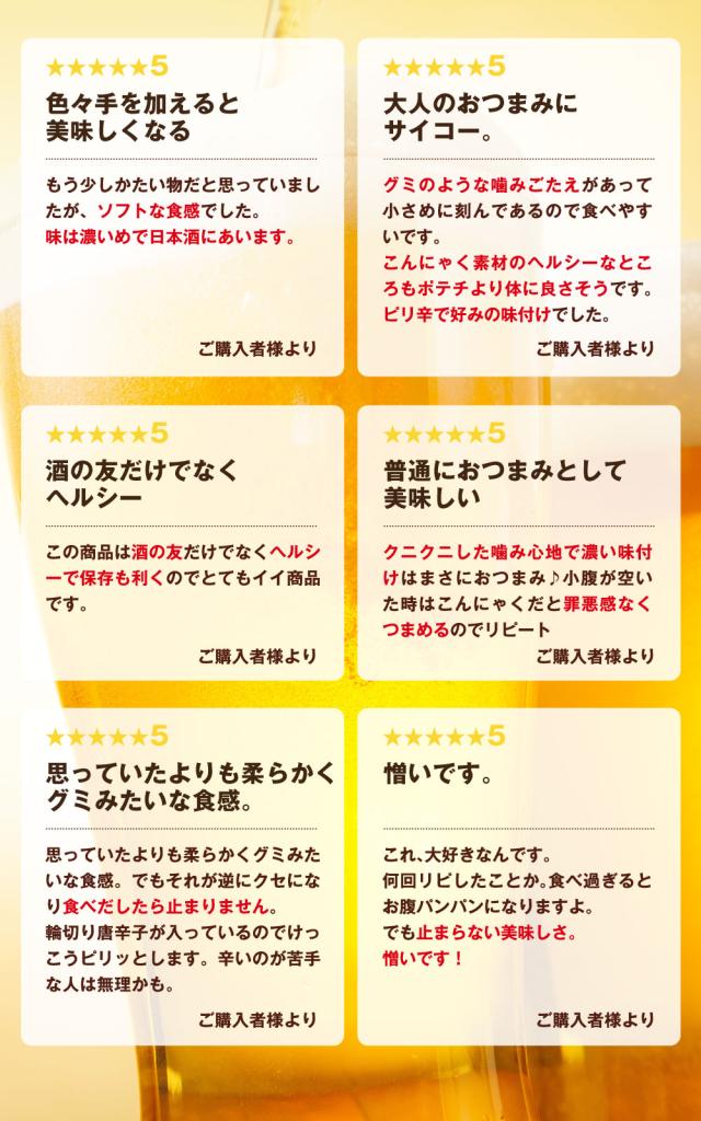 おつまみは食べたいけれど脂贅肉も気になる方に。ヘルシーな国産の蒟蒻(こんにゃく)を使用したヘルシーなおつまみ♪