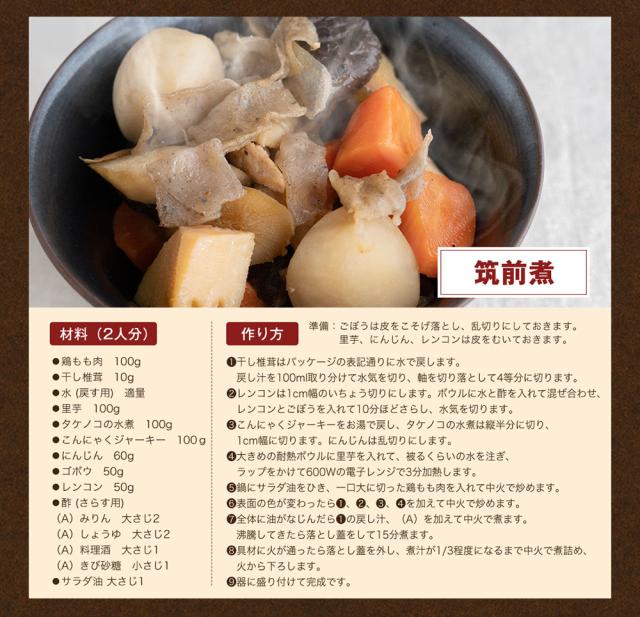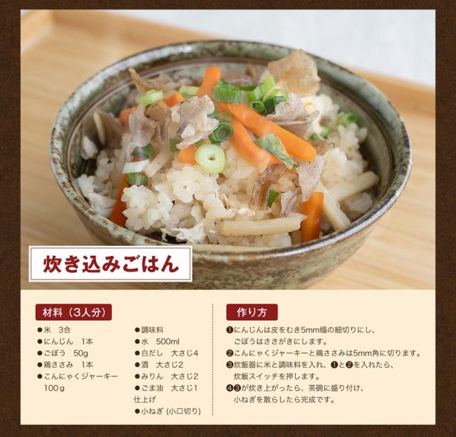 原材料名:こんにゃく(国産)、しょうゆ加工品(しょうゆ、砂糖、みりん、かつお節、食塩、こんぶエキス、魚貝エキス、酵母エキス)、砂糖、穀物酢、しょうが、とうがらし、(原材料の一部に小麦を含む)