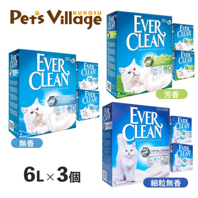 ペット恵み365おまけ付|エバークリーン 無香 芳香 細粒無香 6L×3個セット 送料無料 トイレ砂 小粒 鉱物系 ベントナイト (正規輸入品)【EVER CLEAN)】[猫砂]