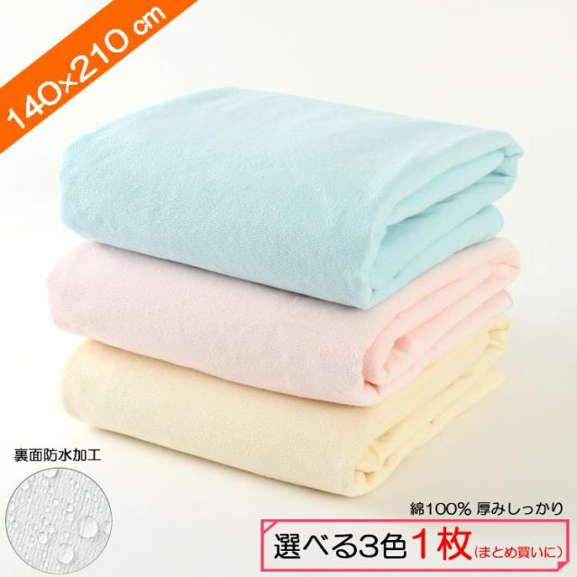 イクズス 綿100%パイル地 防水おねしょシーツ(ダブルサイズ 140×210cm 選べる3色 1枚)