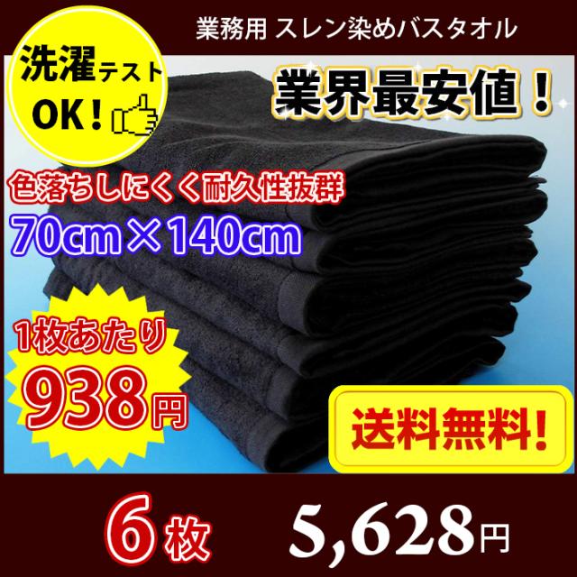 【送料無料】同色6枚セット 長持ちタオル 業務用スレン染め黒バスタオル 1000匁 / タオル バス スレン染め 黒 ブラック 業務用 まとめ買い 丈夫