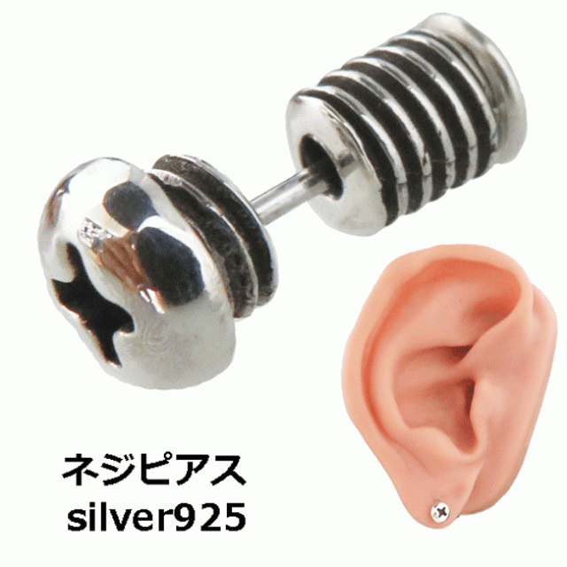 シルバーピアス ピアス シルバー925 ネジピアス ボルト ネジ ナット スタッドピアス シルバー925ピアス ユニセックス ロック パンク 片耳1個売り Sサイズ 003