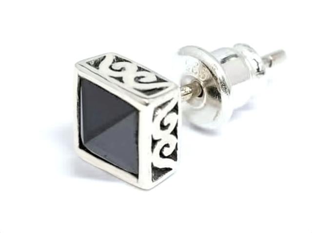 スクエア ブラックキュービックジルコニア /シルバーピアス/シルバー925 片耳売り