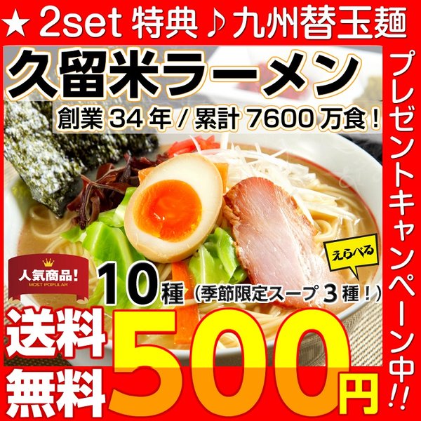 ラーメン 500円 ポッキリ お試し 特選10種スープ 選べる セット 2人前 お取り寄せ ご当地 久留米ラーメン 豚骨 ポイント消化