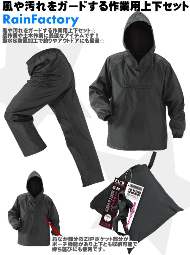 | 風や汚れをガードする作業用上下セット☆農作業や土木作業に最適なアイテムです!撥水&防風加工で釣りやアウトドアにも最適☆おなか部分のZIPポケット部分がポーチ機能があり上下とも収納可能で持ち運びにも便利です。 | ||||||